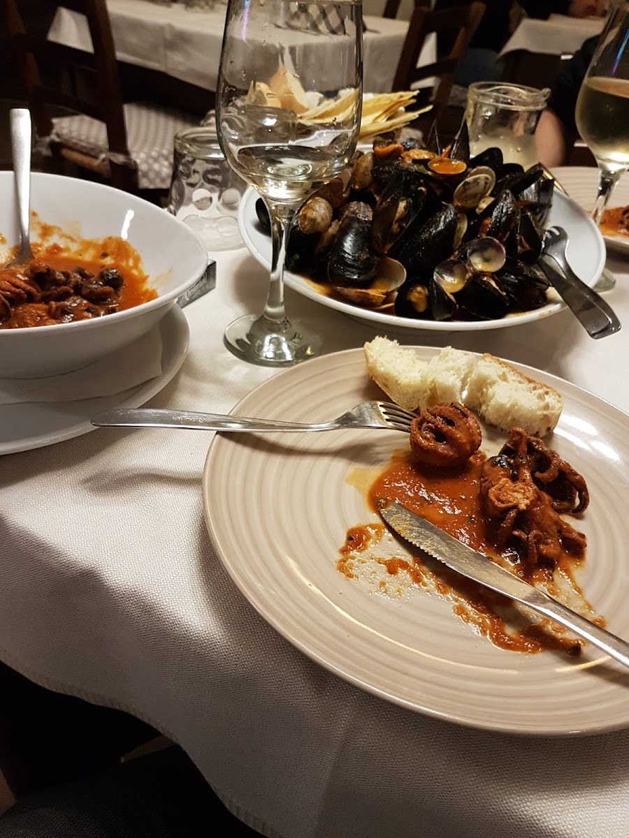 One of the standout features of Hotel Ristorante Pizzeria Il Platano is its menu, which is filled with mouth-watering dishes that showcase the best of Italian cuisine. If you're a fan of seafood, you'll definitely want to try the Spaghetti Vongole E Bottarga. This classic dish features tender spaghetti paired with fresh clams and a hint of bottarga, creating a simple yet flavorful meal that's sure to leave a lasting impression. Another popular option is the Tagliata Con Rucola E Grana, a beautifully cooked steak served with peppery arugula and a generous sprinkle of Grana Padano cheese. For those who love seafood and pasta, the Tagliatelle Zucchine E Gamberetti combines delicate shrimp and fresh zucchini in a light and satisfying sauce that perfectly complements the homemade tagliatelle. And if you're in the mood for something a bit more adventurous, the Moscardini Cozze Arselle, featuring tender octopus, mussels, and clams, is a fantastic choice to enjoy the flavors of the sea.